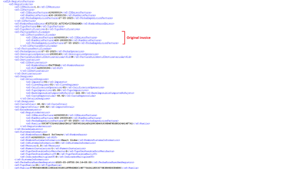 If a sales invoice has the correction type “S” (replacement), you will see the following XML file: