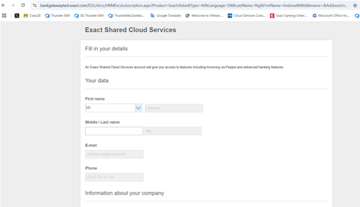 Click the icon at Authorise Exact Shared Services account in the Electronic invoicing via Peppol section. You will see the following screen: