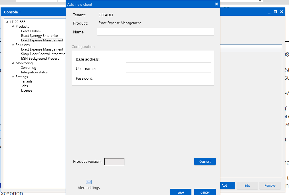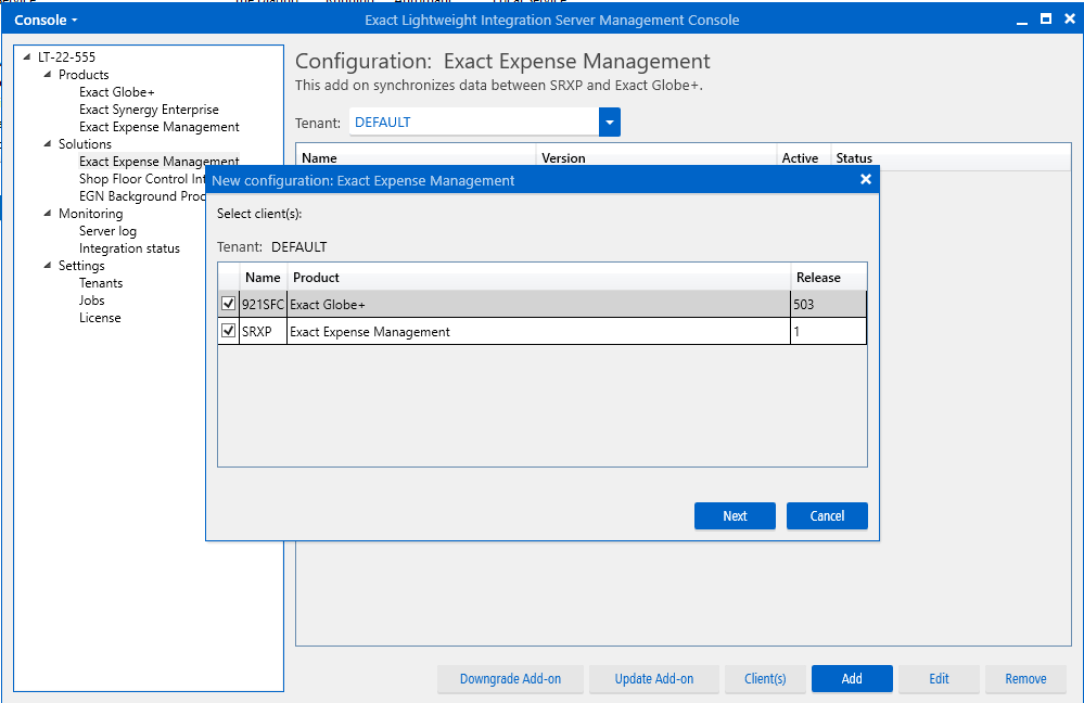 - To configure Exact Expense Management, click Exact Expense Management in the Products