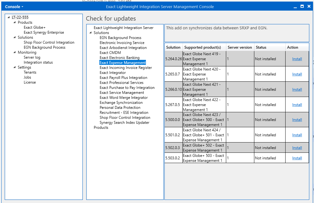 Exact Expense Management (Exact SRXP) in Exact Lightweight Integration Server (ELIS)