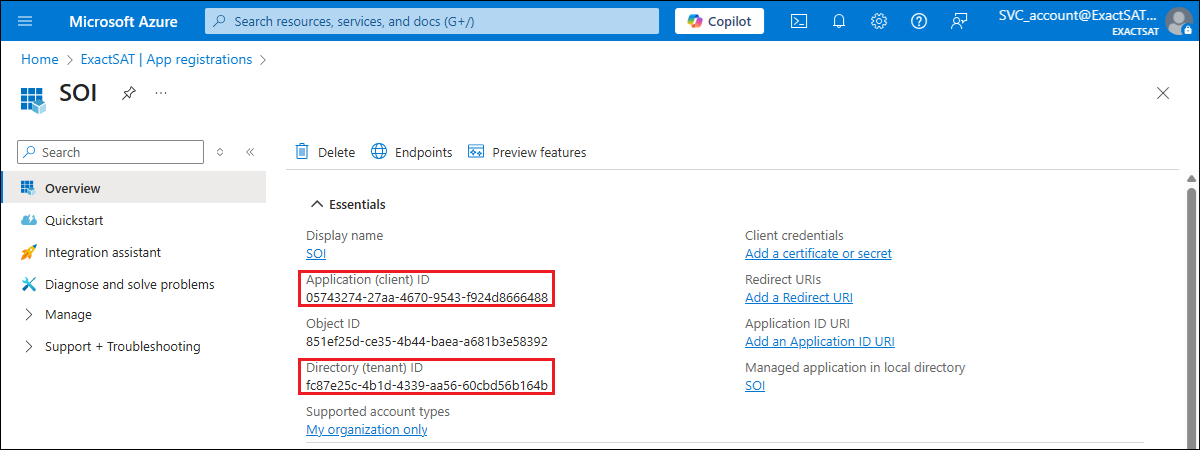 How do I obtain the application ID, tenant ID and client secret to be used in the related Exact solutions?