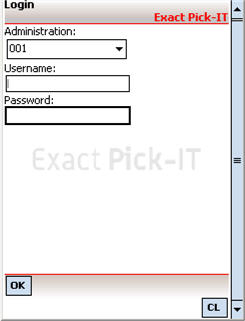 When starting Pick-IT on a mobile device with Windows Mobile, the login screen looks distorted: