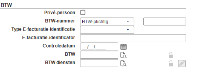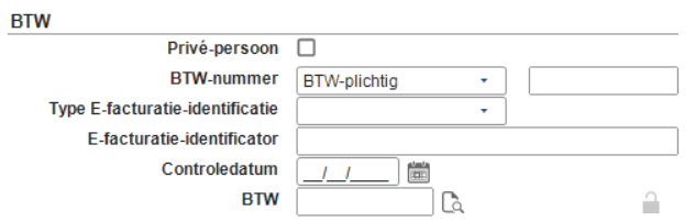 Opmerking: Als er geen opties zijn geselecteerd bij Type E-facturatie-identificatie, wordt de huidige functionaliteit gebruikt, waarbij 0208:EN wordt gedefinieerd voor Belgische debiteuren en 0106:KvK wordt gedefinieerd voor Nederlandse debiteuren.