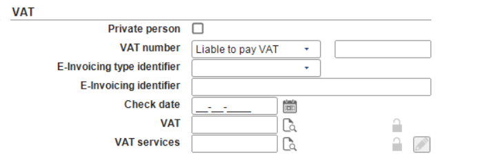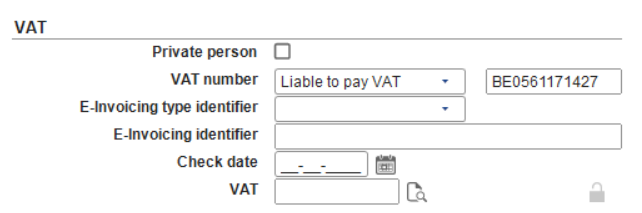 We have added the E-Invoicing type identifier and E-Invoicing identifier fields in the VAT section under the Financial tab at for the Belgian and Dutch administrations.