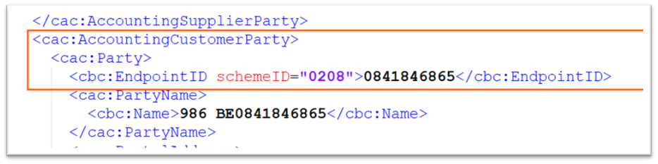 - 0208:Ondernemingsnummer option – Enterprise number will be displayed.